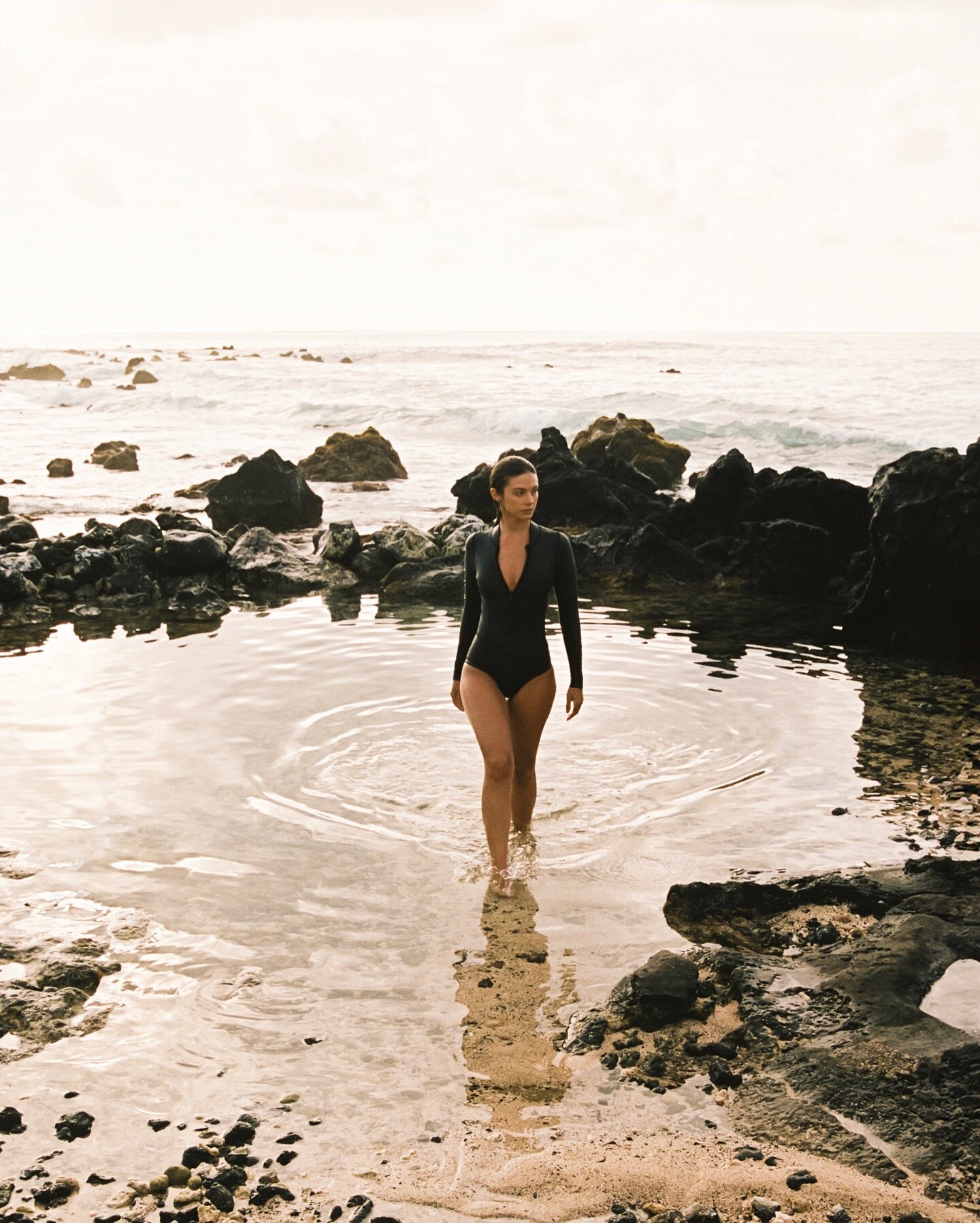 In one captivating photograph, Rose is shown underwater, embodying the brand’s philosophy that “paradise is a feeling, not a place.” Another remarkable image depicts her on the beach, sporting a black Ecoprene wetsuit that showcases Abysse’s commitment to eco-friendly materials. Moreover, a close-up shot depicts Rose holding a nautilus shell to her face, representing the brand’s strong bond with the ocean.